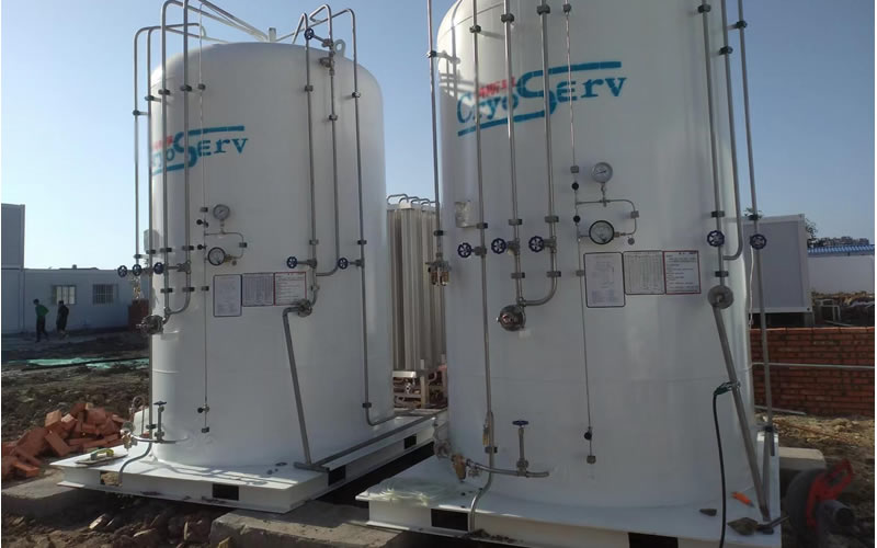 該方艙醫(yī)院的氧氣主要供應源采用兩個五立方液態(tài)氧儲罐供氧。