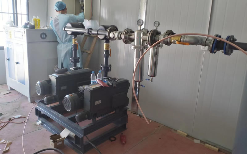 真空負壓吸引系統(tǒng)機組選用油潤旋片式真空泵,加裝管道除菌過濾器和排氣高溫消毒滅菌設備。