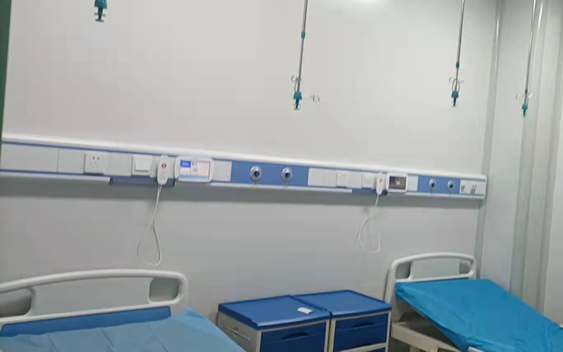 負壓病房每間設(shè)立兩個床位,隔離病房每間設(shè)立一個床位,分別安裝醫(yī)用氣體設(shè)備和呼叫對講系統(tǒng)設(shè)備。