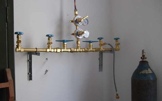 鄉(xiāng)鎮(zhèn)衛(wèi)生院中心供氧系統(tǒng)氧氣站房一般采用氧氣匯流排和中小型醫(yī)用制氧機(jī)的解決方案供應(yīng)氧氣,通過(guò)氧氣管道輸送到各個(gè)用氧點(diǎn)。充灌氧氣方便的地區(qū)可采用多個(gè)40L氧氣瓶通過(guò)氧氣匯流排連接減壓設(shè)備、穩(wěn)壓設(shè)備供氧,這種方案的優(yōu)點(diǎn)是前期投入低,氧氣濃度有保證(一般都能達(dá)到99%)。